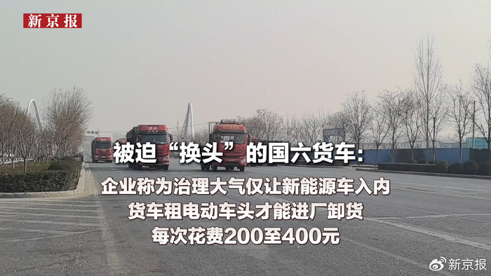 新京报记者近日赴河南多地调查发现,一些造纸、火电企业,只允许新能源电动货车入厂。由此,催生了货车“换头”的生意:有人专门在厂区外租赁新能源电动车头,根据使用时长不同,收费200元至400元不等,也有货车因等待卸货耗时长,被收费数百元。