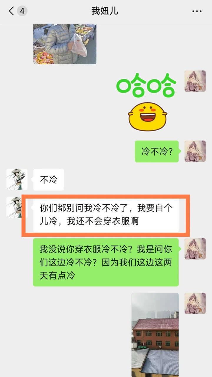 我在微信上发了一句:冷不冷?