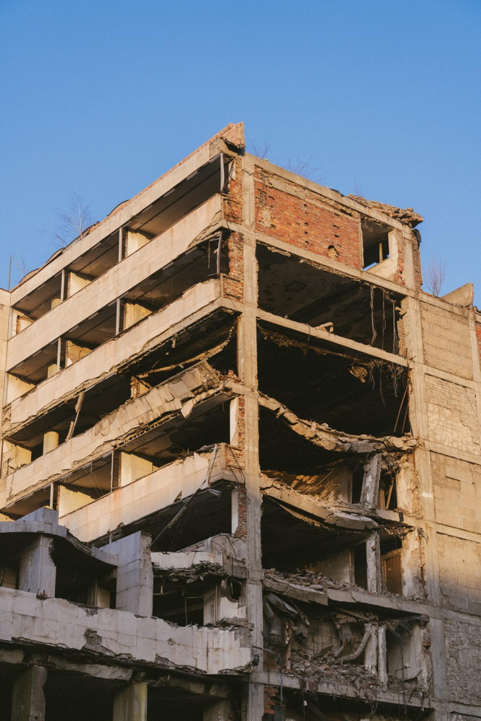 而最刺痛我的,照旧那些被轰炸过的大楼,20多年以前了,它们仍旧以半崩塌的形势兀自矗立在街谈中间,多为20世纪中后期的砖混结构配置,楼层多在五六层,原来规整的外立面早已不复存在,就那样嵌在熙攘的街巷里,与邻近完好意思的配置形成夺办法对比。