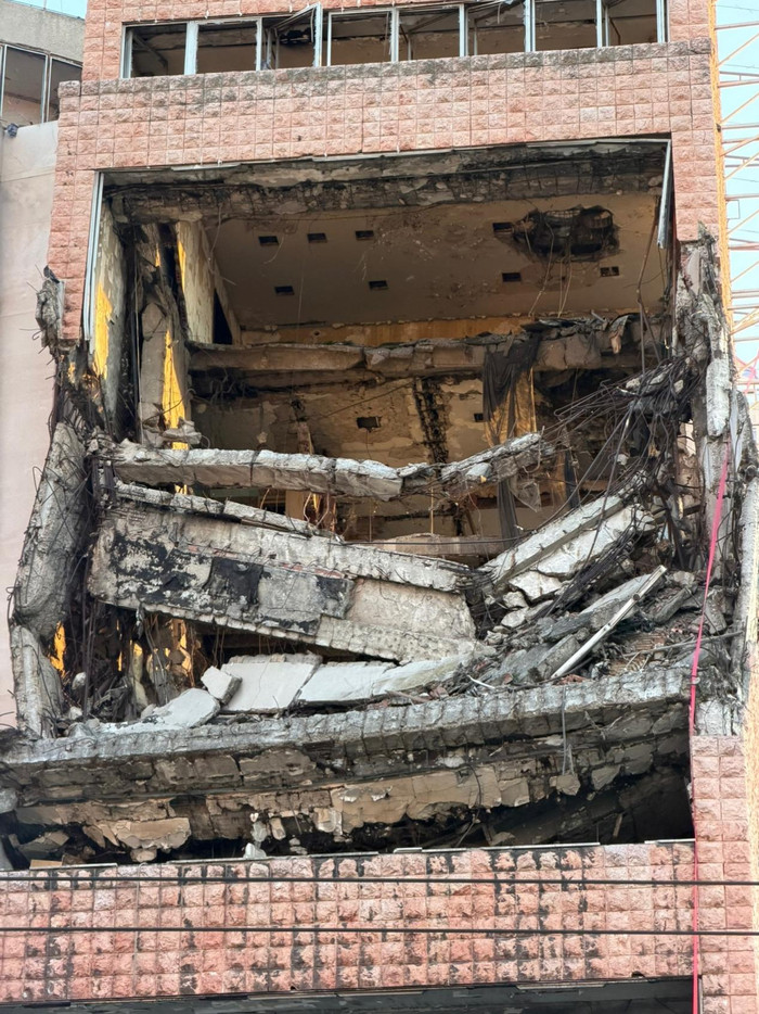 前国防部大楼,整层楼全部塌陷,惟有钢筋透露在外面