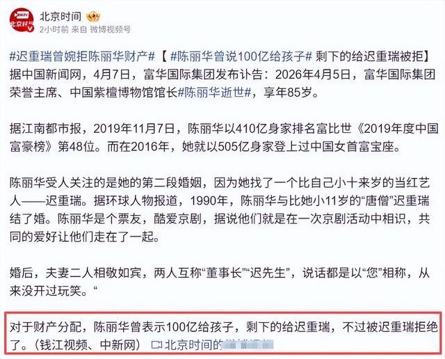 更让东说念主无意的是,迟重瑞主动断绝了部分遗产,暗意“财富无法磋商厚谊”。